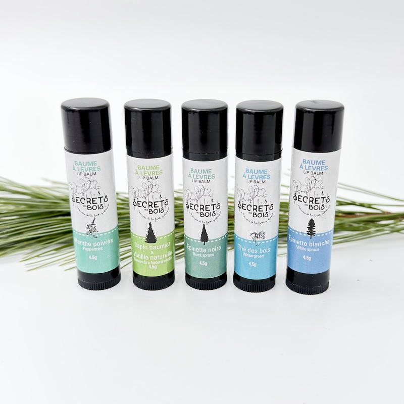 Embrassez la nature grâce à nos baumes à lèvres! Ils sont fabriqués à partir d’arbres et de plantes du Québec ayant des vertus réparatrices pour vous apporter réconfort et douceur.